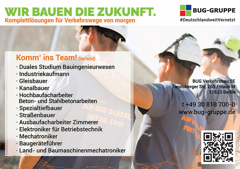 Die „BUG Verkehrsbau SE“ bietet eine Reihe interessanter Arbeits- und Ausbildungsplätze.